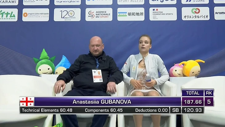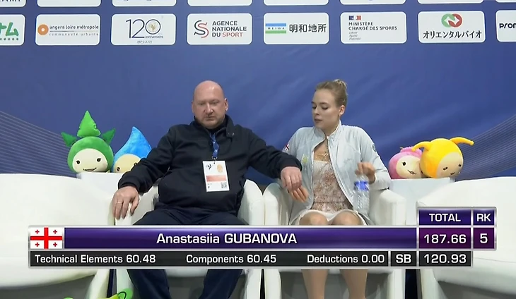 В Анже Губанова показала лучший для себя результат сезона как по сумме (187,66), так и в произвольной программе (120,93). Год назад она начинала увереннее, хотя так ни разу и не преодолела отметку в 200 баллов за турнир.