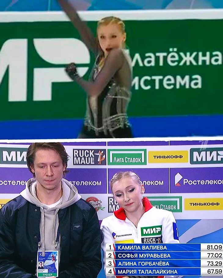Впрочем, не все на трибунах были согласны с решением судей. После объявления оценки Муравьевой в трансляции отчетливо было слышно женский голос с трибуны: «Мало!».