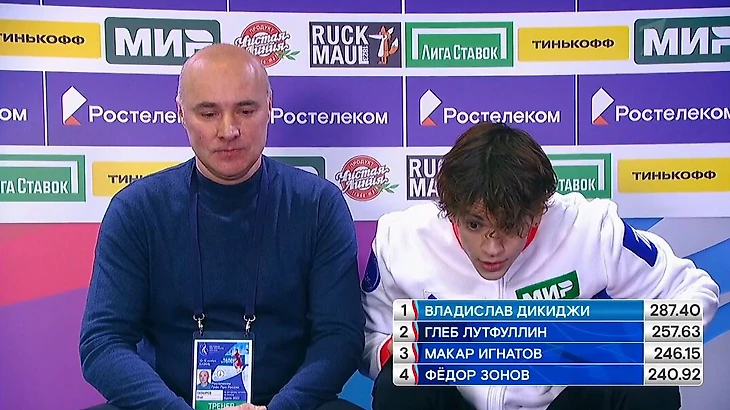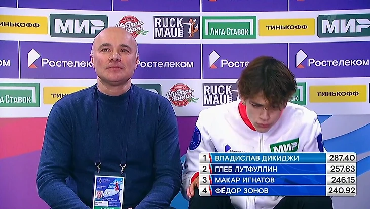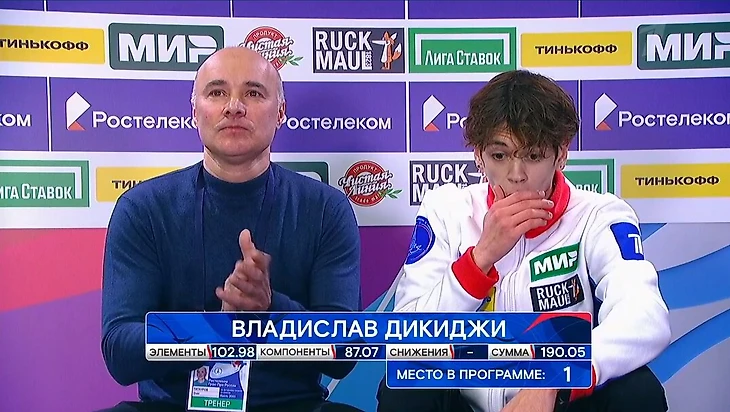 После Владислава катался Семененко, но уже к середине программы стало ясно, что чемпион России уступит. Дикиджи ожидал оценки соперника уже расслабленно – в приятной чемпионской компании Алины Загитовой.