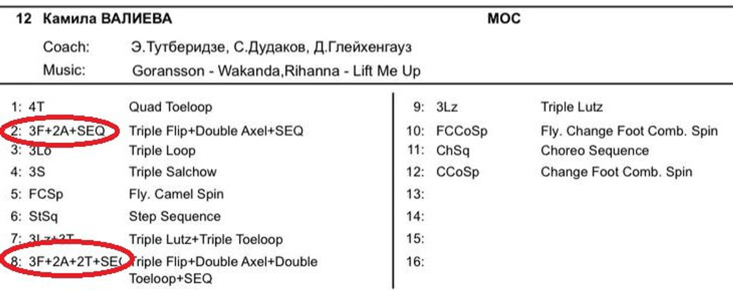 1. Главную ошибку тренерский штаб Этери Тутберидзе совершил еще до проката. В заявке у Валиевой стояли три последовательности прыжков, как и необходимо по правилам: