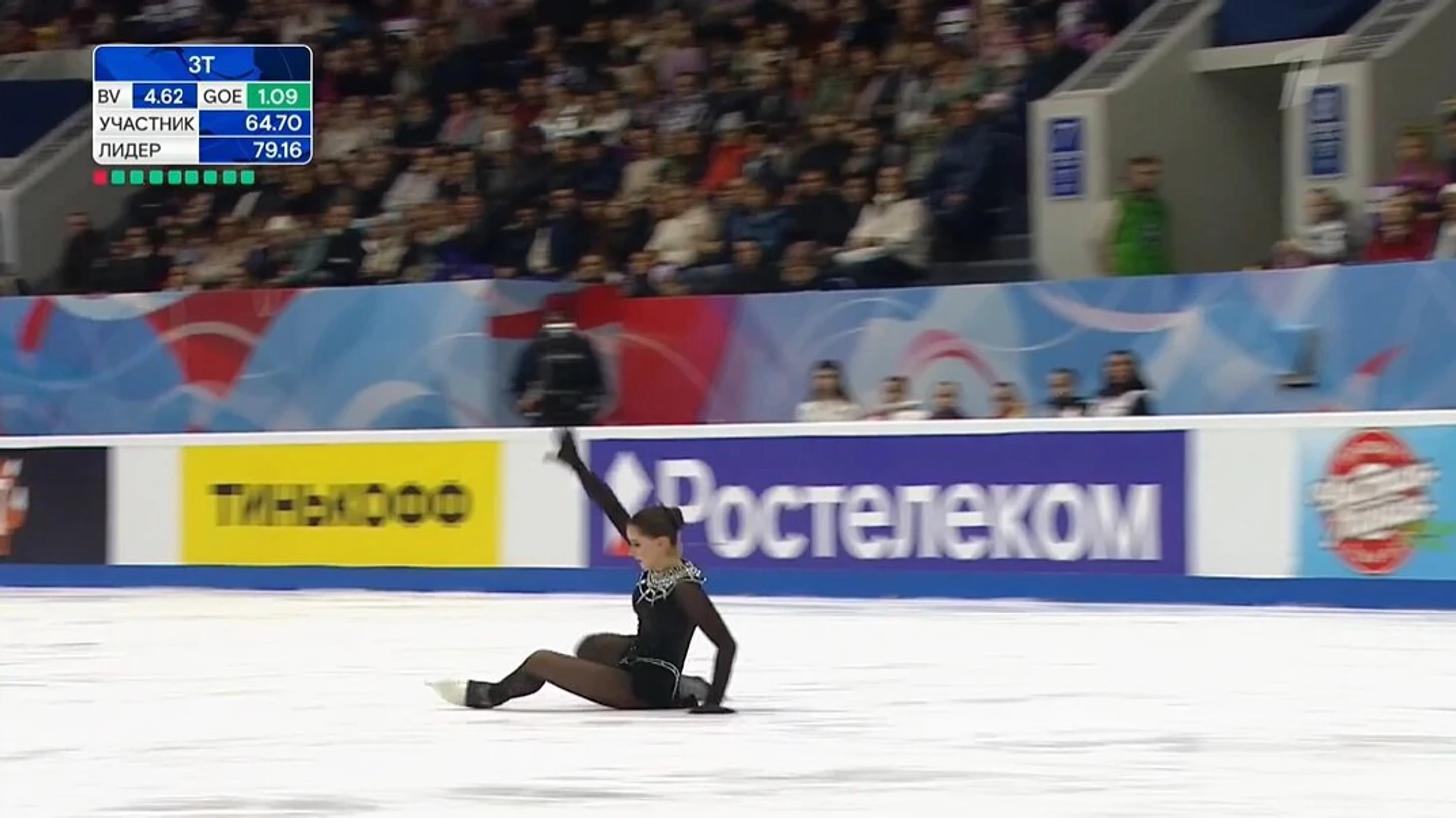 Вместо возможных 4,13 балла Валиева получила 0,1 балла (1,1 за элемент, но минус балл за падение).