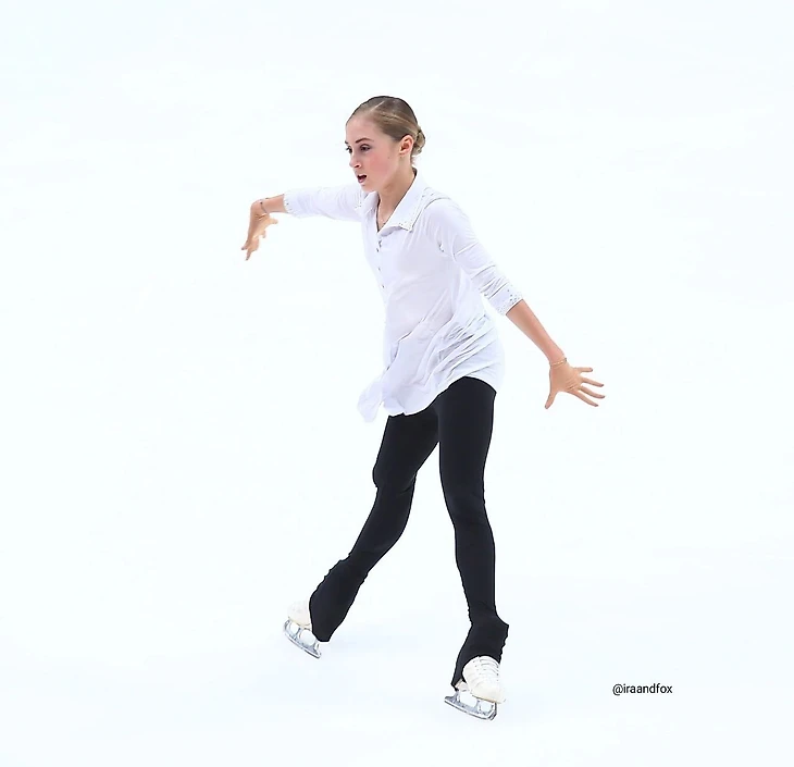 Прокаты тройки лидеров открывала Алина Горбачева. Начался прокат с падения с четверного сальхова, из-за которого мы не увидели второй заявленный квад. Дальше - все чисто и легко. Катание Алины завораживает, немного возвращает фанатов фигурки к временам одиночного катания Алены Косторной. Идеальные каскады, прекрасные двойные аксели и отличное окончание тройным риттбергером. Оценка двух прокатов более чем уверенная - 219,02 балла