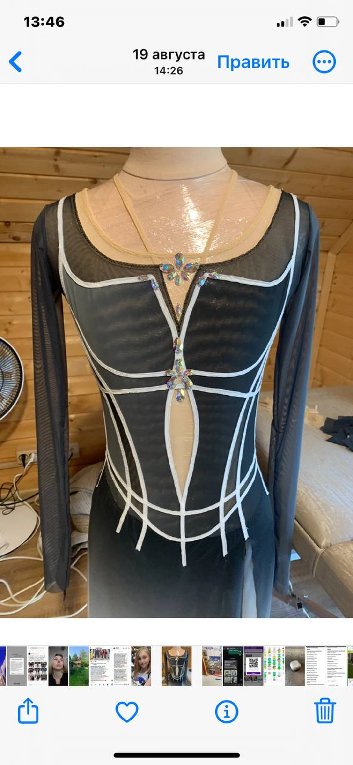 «Доброго дня и прекрасного настроения! Многие из вас правильно нашли изменения в платье👌 На этих фото можно приблизительно понять как меняется платье в процессе рождения!!! Да, да, именно так, как рождается картина у художника🤷♀️ иногда от задумки , до конечного варианта проходит несколько стадий. В этом платье задумка была в корсете, который графически ложился на темный фон платья… далее отказались от лифа, он сильно резал фигуру( примерка на льду показала, что это не очень подходит для Сони) Потом на прокатах , я нашла недочеты и решила переделать кое-что🙌 Спинка поменялась, юбку укоротили , и все платье целиком затонировала по месту.., ну и добавили темные перчатки👌 На данный момент не хочется ничего менять… Но..! Никогда не говори никогда…, возможно все🙈 я человек творческий и могу под влиянием идеи что-то поменять или сшить новое! В этом есть плюс, моя дочь может менять платья когда захочет💜 Я ей горжусь и очень люблю❤️❤️❤️».