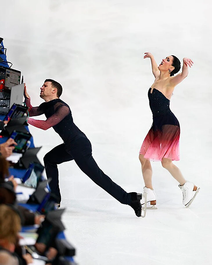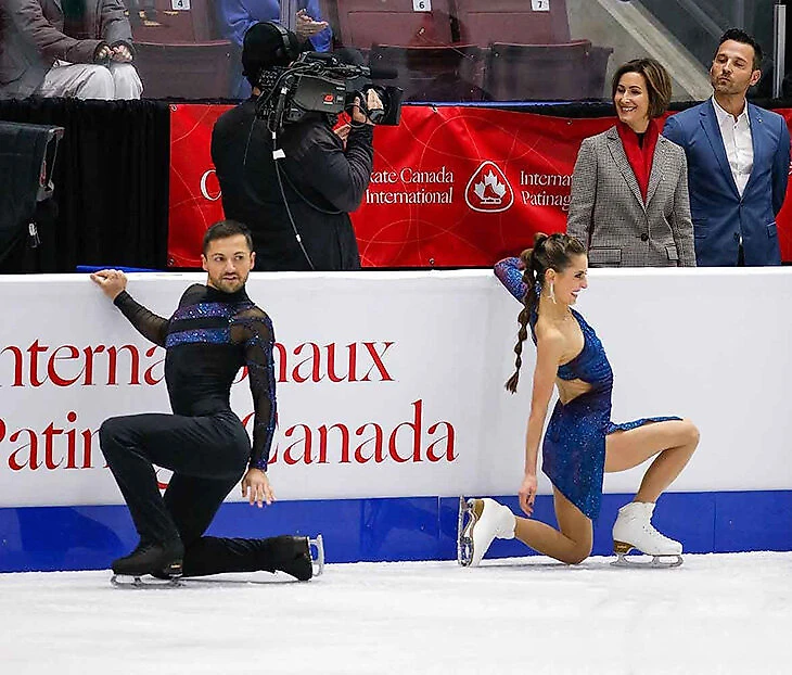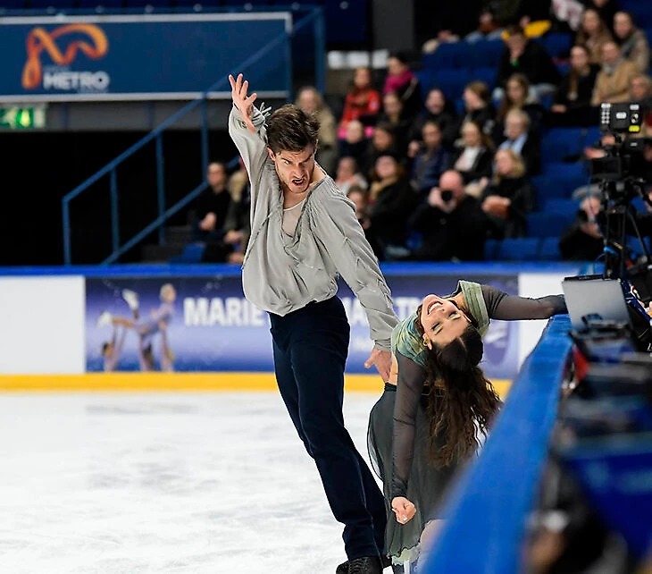 ● Лидеры канадских танцев на льду Пайпер Гиллес и Поль Пуарье драматично замирают перед судьями в начале хореодорожки.