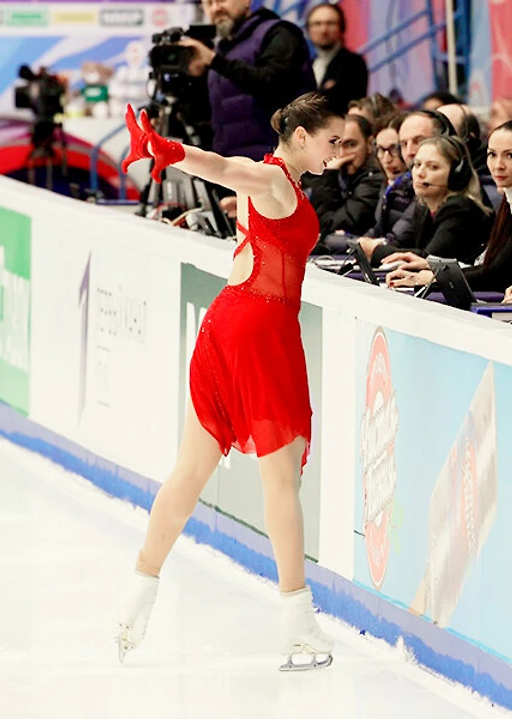 Забудьте кроткую Валиеву – теперь она дерзкая леди в красном. Это идеальное попадание
