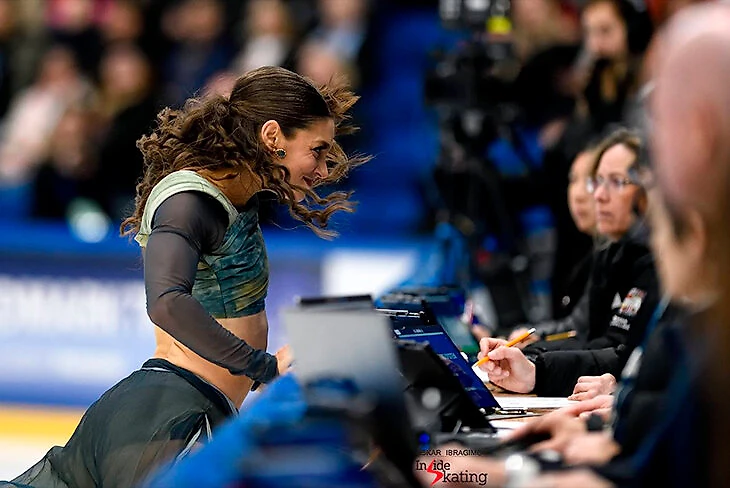 Луна Хендрикс заигрывает с судьями в обеих программах  сезона: в короткой под энергичное техно подъезжает к бортику в середине проката