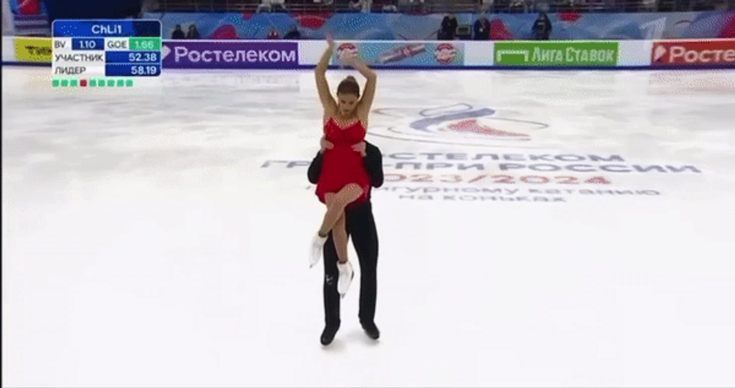 Из наших танцоров тенденцию поддержали разве что Дарья Савкина-Александр Вахнов и Софья Тютюнина-Матвей Грачев (на гифке ниже)