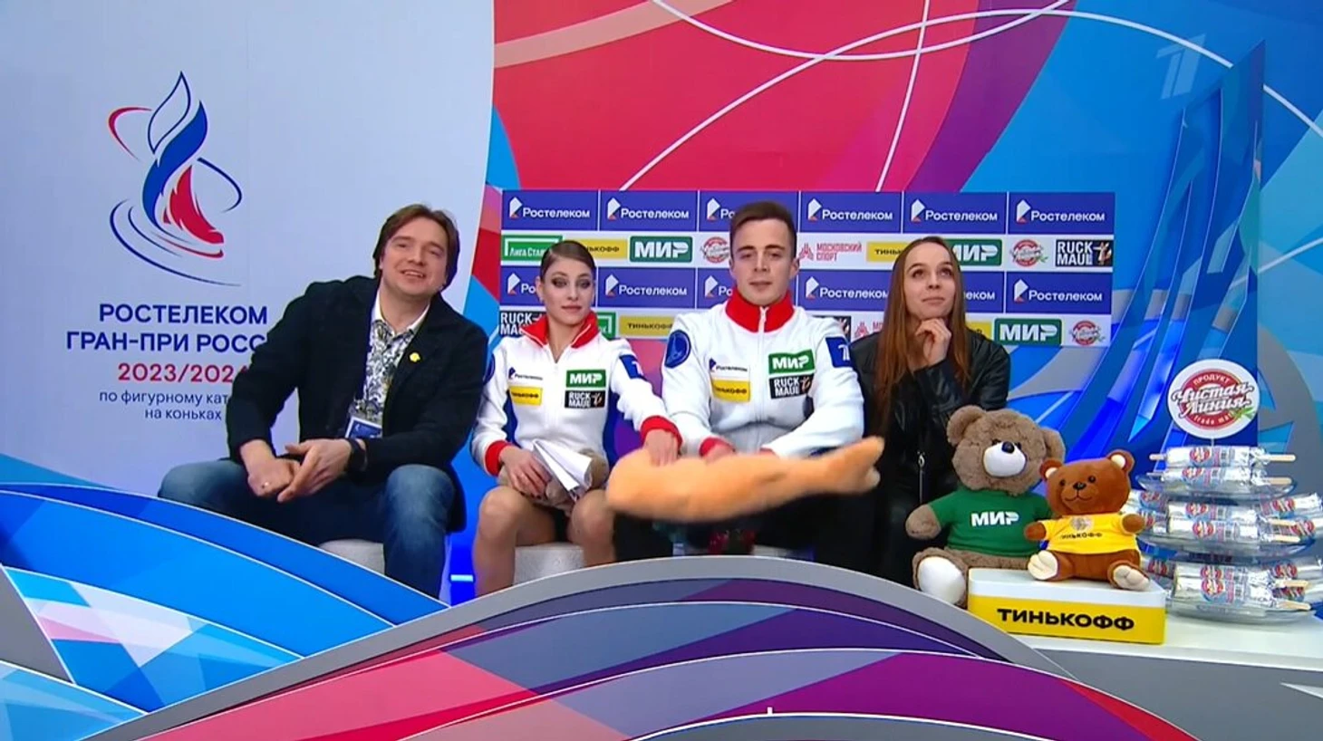 В кисс-энд-край тоже смеялась и показывала плакат от болельщиков, но потом стала серьезной. Убрала игрушку от партнера, который был настроен повеселиться.