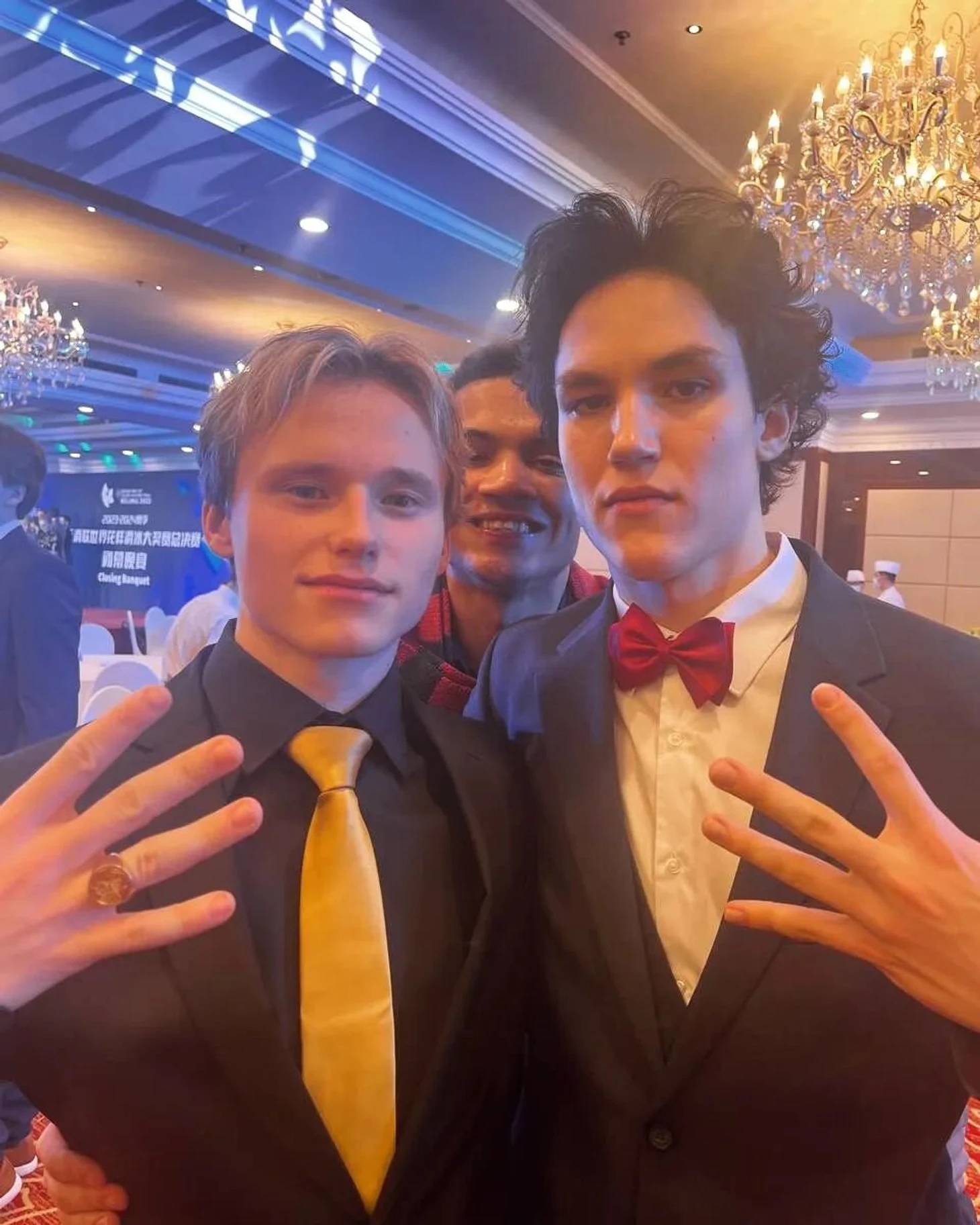 Вечеринка лучших фигуристов мира: у Хендрикс – ну ооочень открытое платье, у Малинина – золотой галстук, а Аймо в трениках