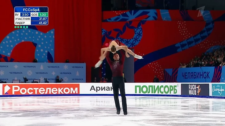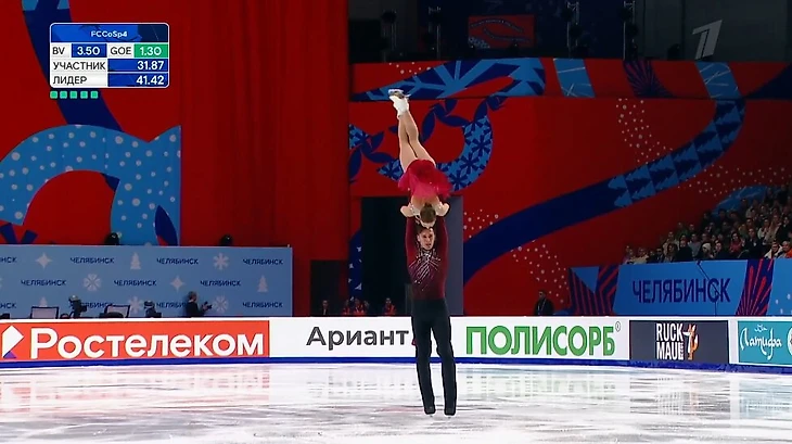 ● Бойкова и Козловский выступали в первой разминке и сразу захватили лидерство, хоть и откатали не идеально – у партнерши ошибка на риттбергере.