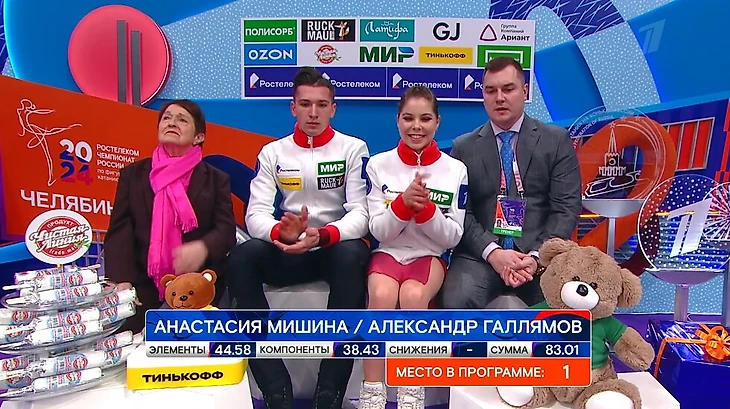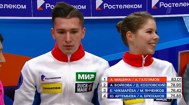 За прокат фигуристы получили 83,01 балла – Мишина радовалась, а Галлямов как будто ожидал большего.