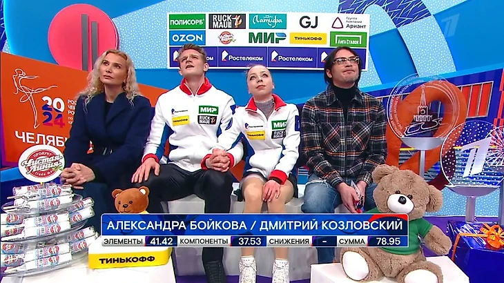 И все это под восторг Татьяны Тарасовой в прямом эфире: «Вот это да! Вот это короткая программа! Сразу понятно, что это программа, потому что она захватывает тебя от начала и до конца. Все элементы сделаны, показаны: въезды, выезды, позиции вверху.