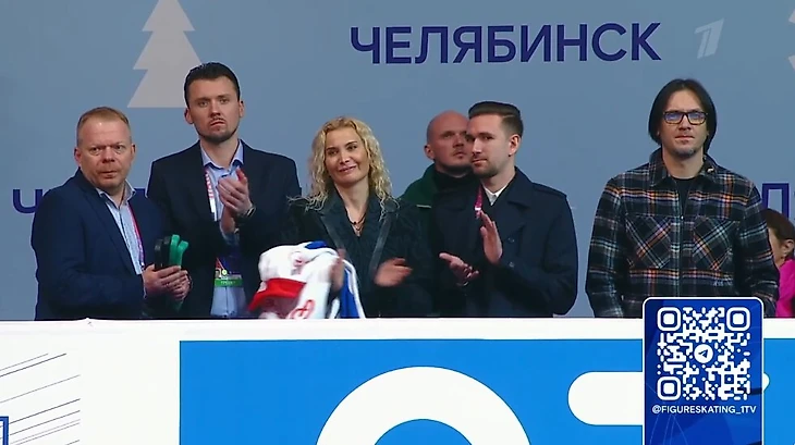 После проката диктор поздравил Козловского с днем рождения – фигуристу сегодня исполнилось 24 года. Весь штаб Тутберидзе и сама Этери присоединились к поздравлениям.