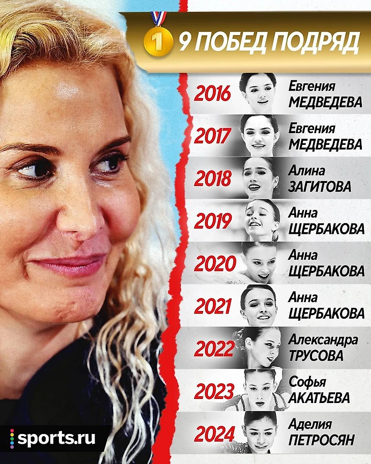Причем она шестая чемпионка России, которая тренируется в группе Тутберидзе, а для Этери это уже девятая победа на чемпионате подряд.