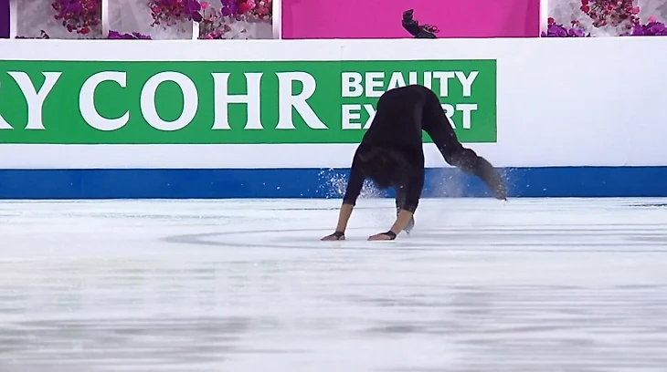 В итоге у француза сразу три недопустимых элемента в короткой (два одинарных прыжка и вращение) плюс падение – за технику он получил всего 19,20 балла.
