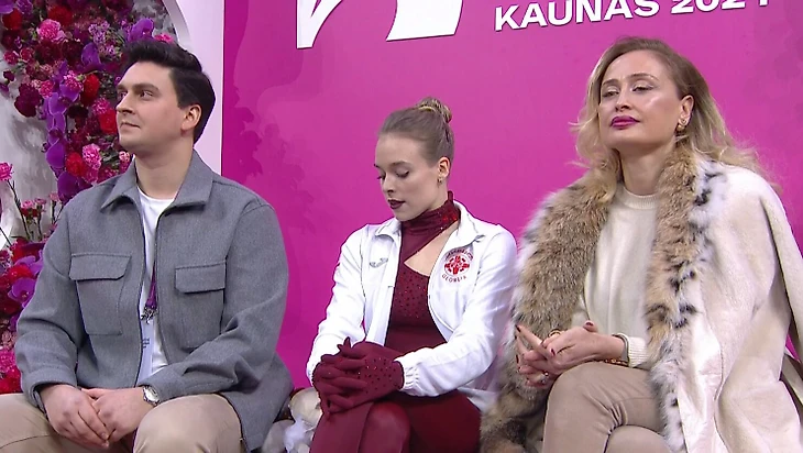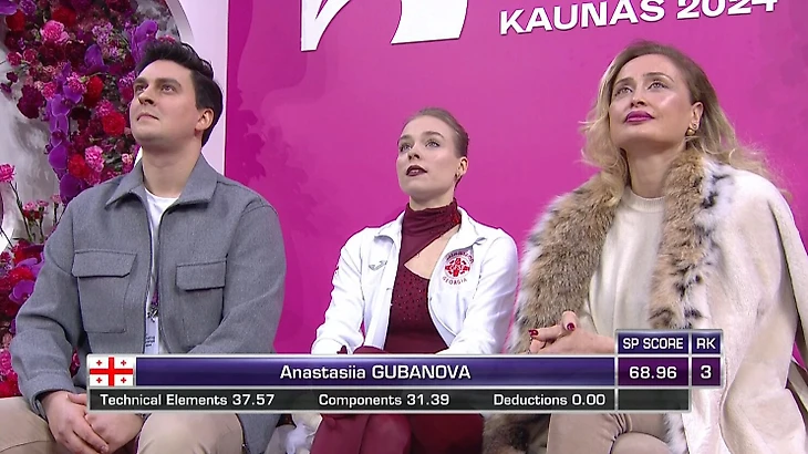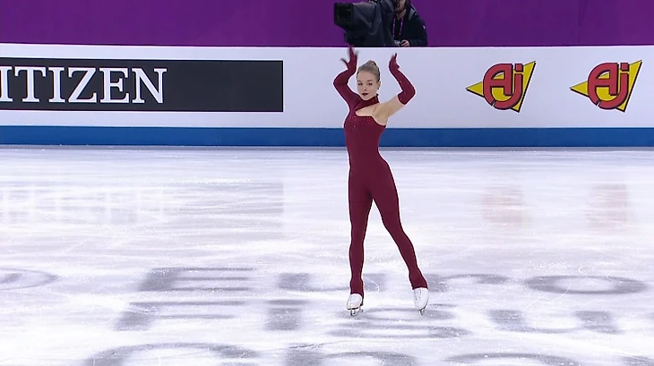 А действующая чемпионка Европы Анастасия Губанова только третья, но с чистым прокатом.