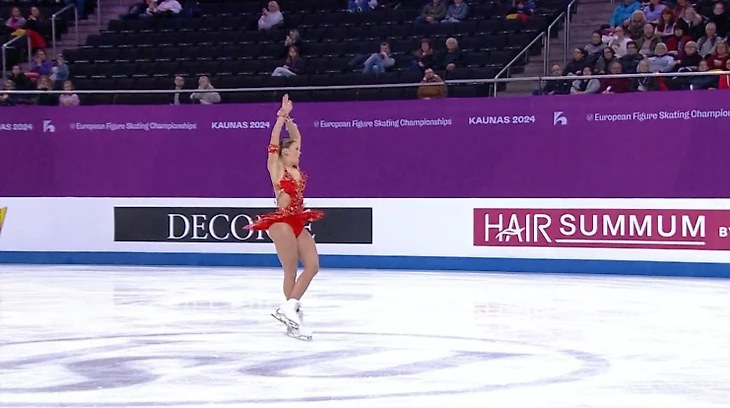 На чемпионате Европы по фигурному катанию в Каунасе дошла очередь до девушек – короткую программу выиграла бельгийка Луна Хендрикс.