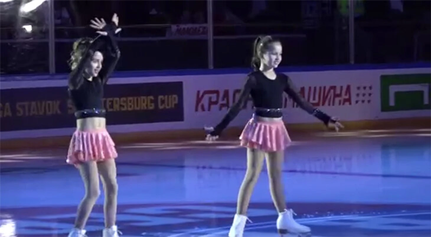 А еще Арина – постоянный гость матчей хоккейного СКА, болеет на трибунах и регулярно выступает с показательными номерами. Вот выступление под «Макарену» вместе с подружкой Никой Жмакиной.