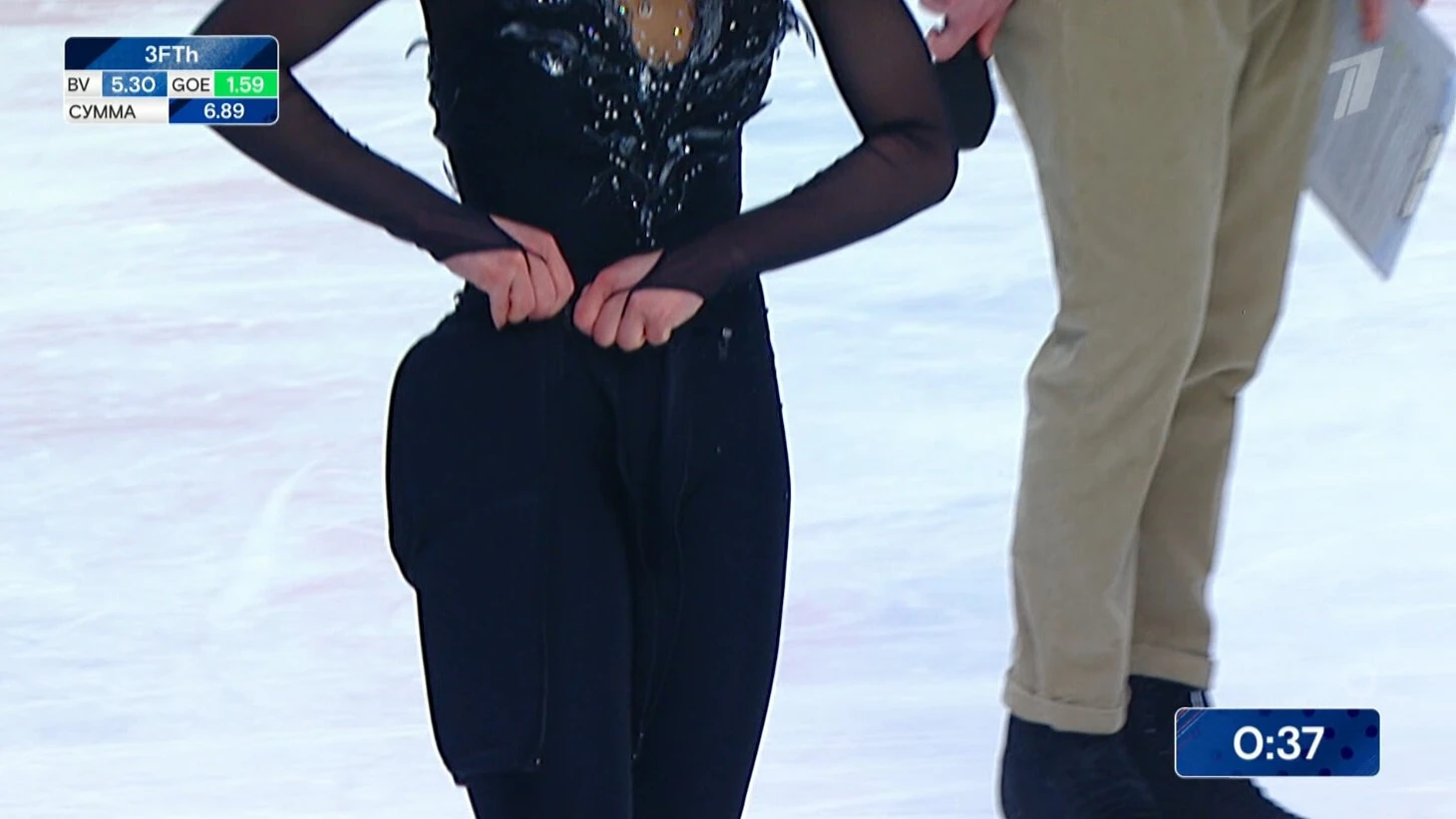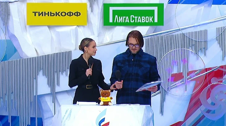 Загитова и Ягудин стояли у трибуны и выдавали реплики между стадиями турнира. Работы у них было немного – например, после двухминутного вступления они вернулись спустя 34 минуты молчания. При этом у Алины реплики были односложными (в конце дня стало понятно почему), отдувался в основном Ягудин.