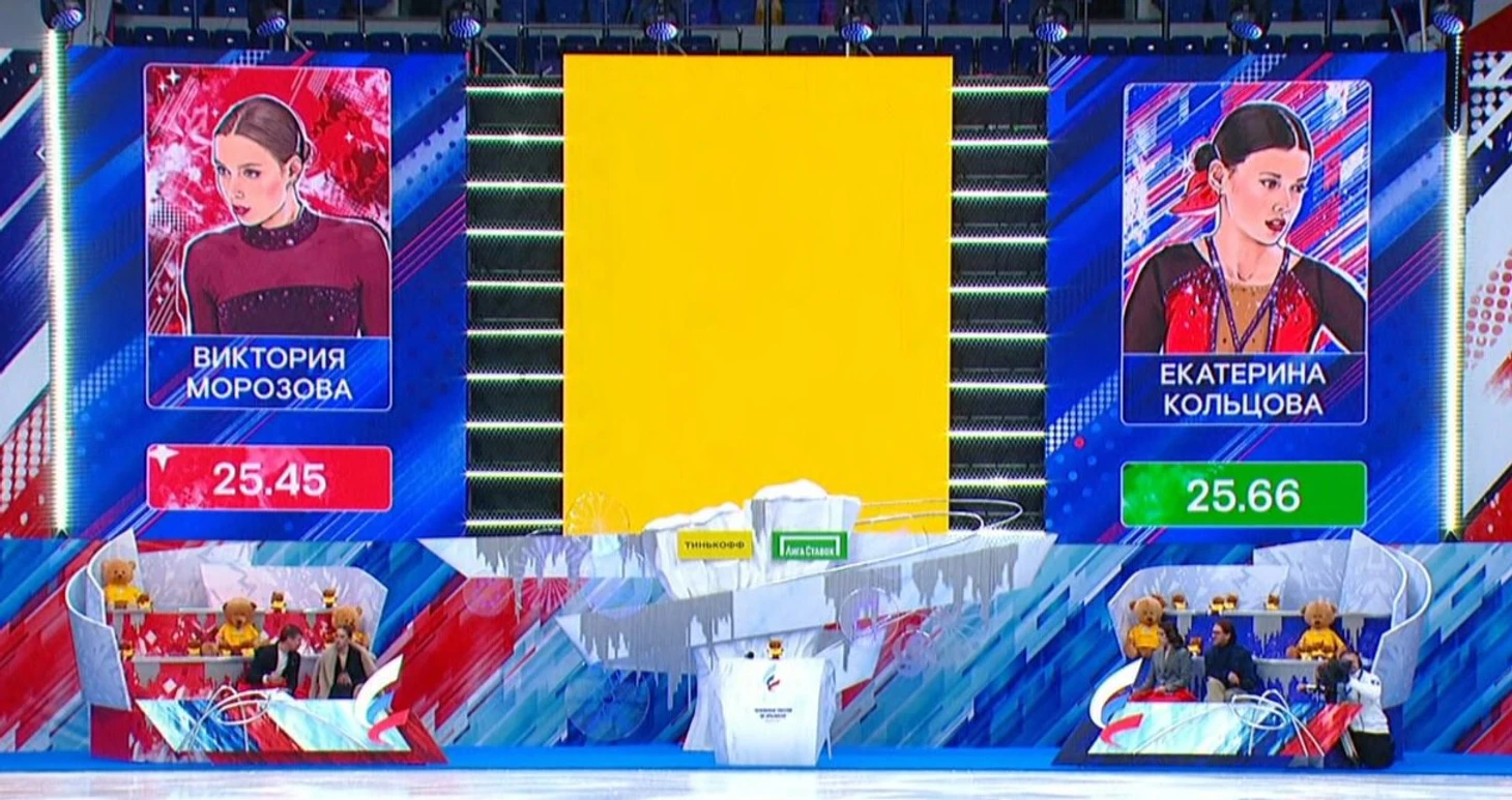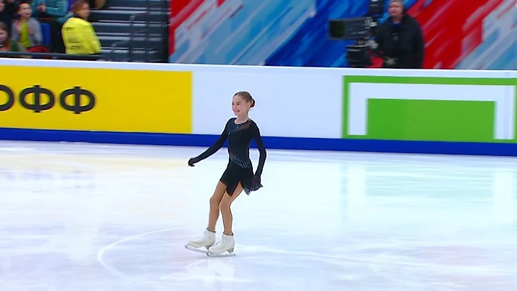 То в самом конце вдруг переименовала победительницу, с которой тренируется в группе Этери Тутберидзе, позвав на награждение Маргариту Базылук (вместо Базылюк).