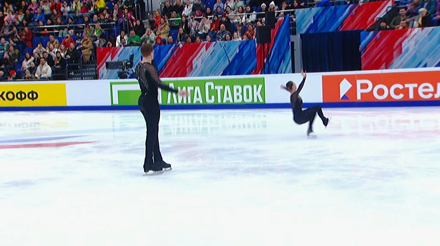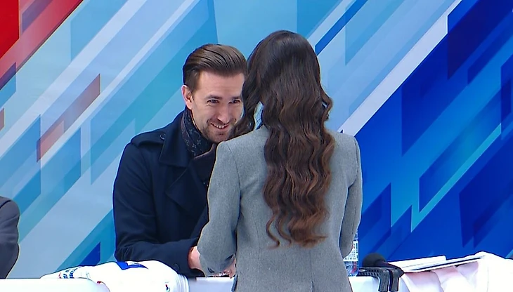 После соревнований пар, где зрители слушали в основном музыку и диктора, Траньков взялся комментировать элементы – и это удачный ход, все-таки у зрителей на арене не было такой удобной графики, как в трансляции.