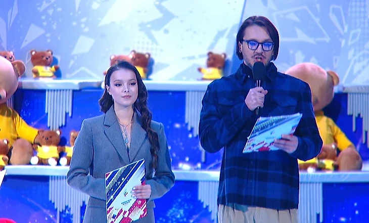 Анна начала эфир с запинок, но после шуточной сценки с Глейхенгаузом, который подготовил ее к дальнейшему эфиру, собралась.