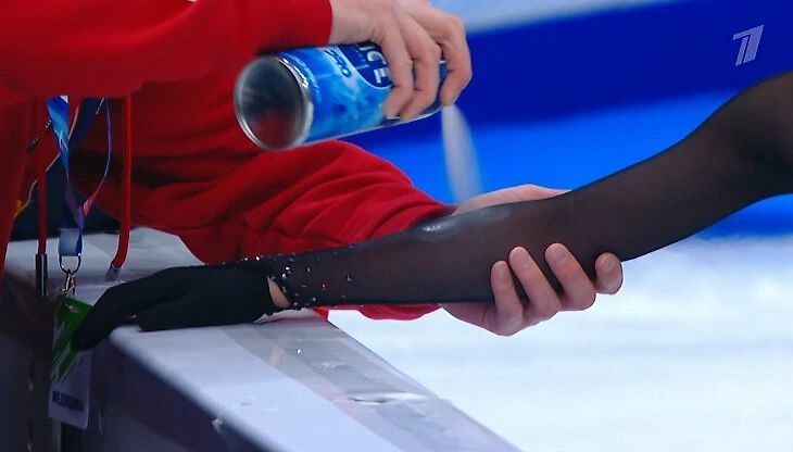 К фигуристке тут же подскочили врачи – обработали руку спреем-заморозкой: