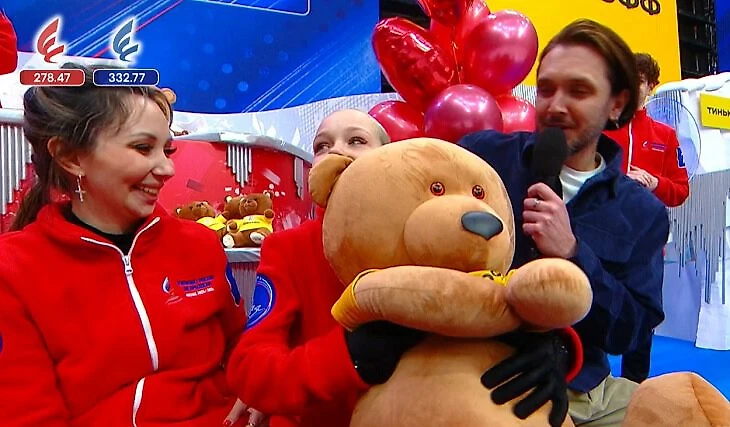 А Максим Траньков вручил ей большого плюшевого медведя: