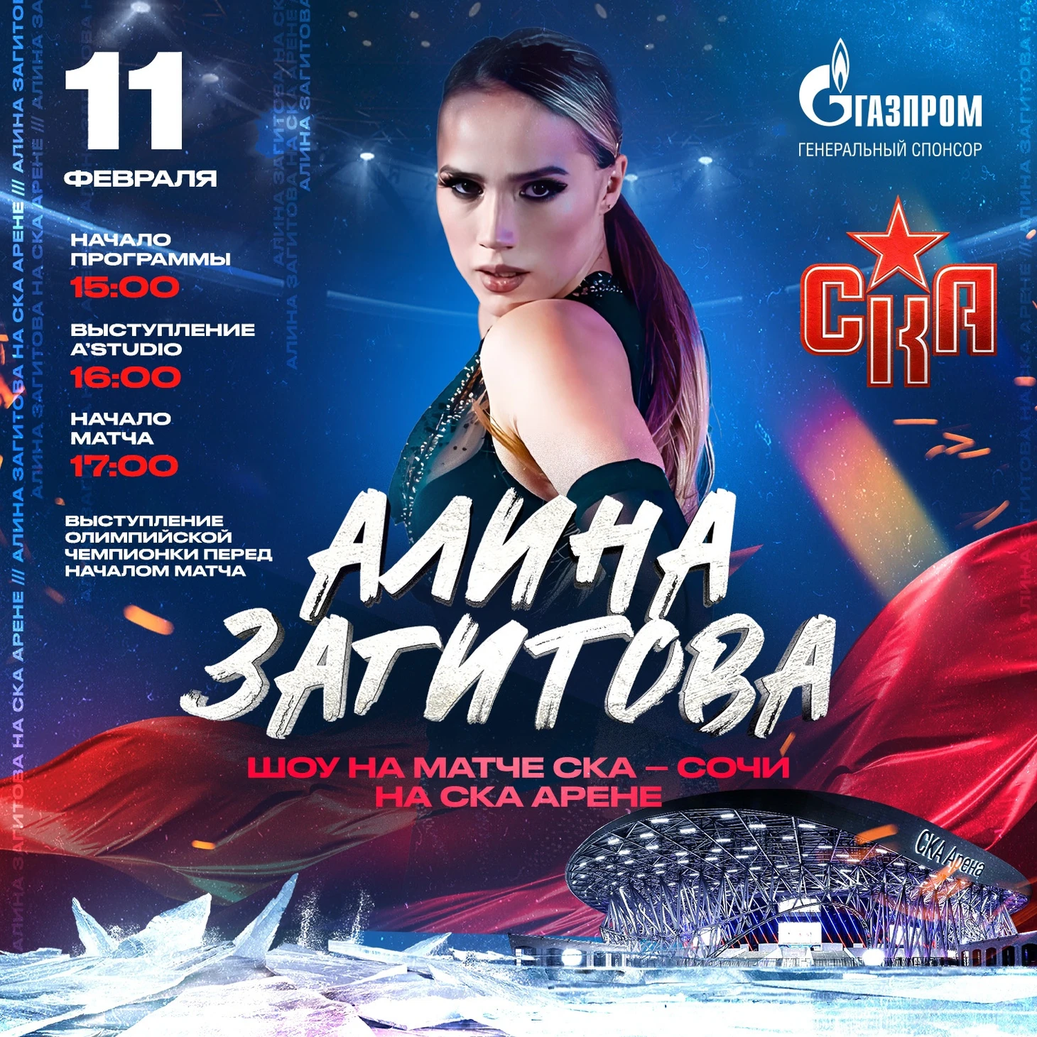 наш стартовый матч на СКА Арене откроет выступление олимпийской чемпионки по фигурному катанию Алины Загитовой!