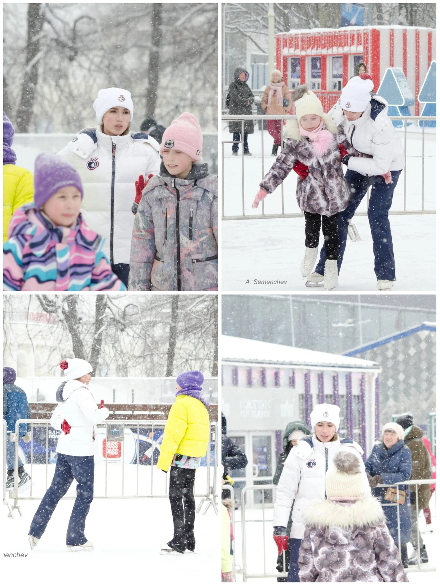В видео выше есть фрагменты и с мастер-класса по фигурному катанию от Алины Загитовой, который она дала всем желающим там же, на катке ВДНХ, после проведения экскурсии. Вот ещё немного видео с этого мастер-класса: