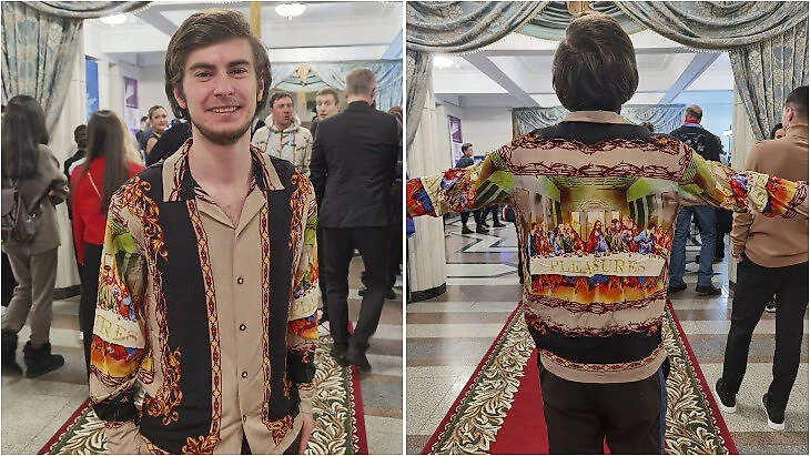 Но приз за самое оригинальное изображение уходит Марку Кондратюку. Он нашел рубашку с изображением Тайной вечери. Скучает по произвольной олимпийского сезона под «Иисус-Христос — суперзвезда»?