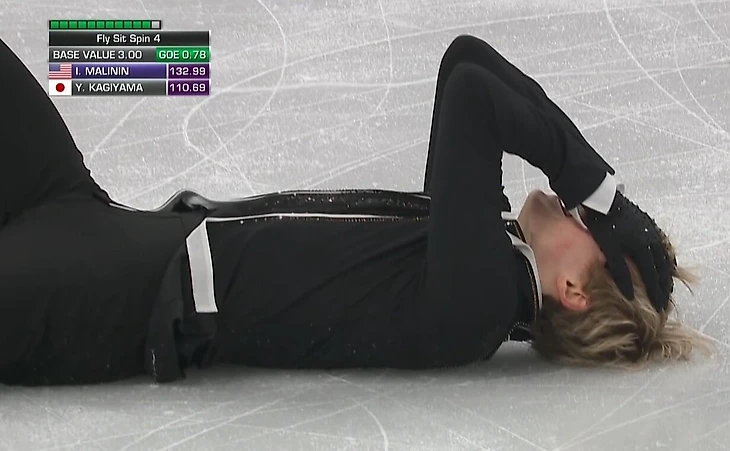 Одна лишь базовая стоимость элементов в программе Малинина – 109,79 балла. Для сравнения: у второго по произвольной Адама Сяо Хим Фа вся оценка за технику (база + GOE) – 116,83, у бронзового призера Юмы Кагиямы – 110,69. Остальные не пробили отметку в 100 баллов.