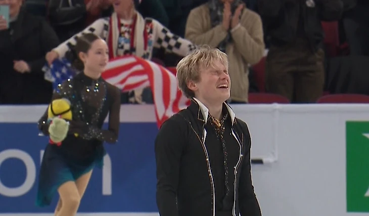 Хочется и других отметить. Юма, внезапно бахнувший четверным флипом, да так легко, как будто он его с новисов прыгает. И с точки зрения хореографии, подачи, владения коньком его программа - услада для глаз. Жаль, что случилось нелепое падение на выезде с акселя, но все равно оно ни на что не повлияло. Ну и Адам - герой вечера практически наравне с Ильей. Величайший камбек в истории ЧМ. Но пожалуйста, давай впредь такие прокаты выдавать в последней, а не в первой разминке.
