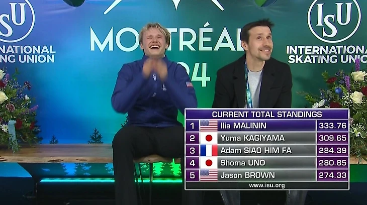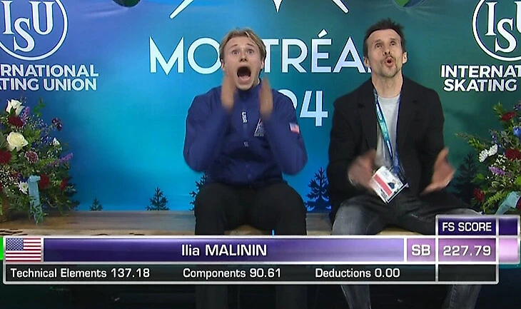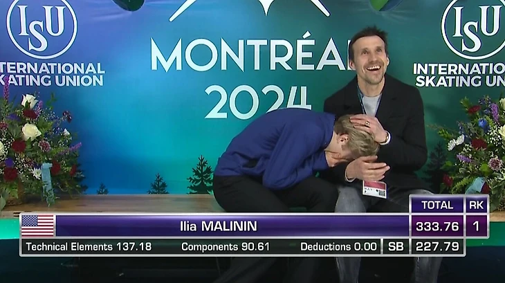 Среди вихря внимания у Ильи нашлось время ответить на звонок мамы. А вот отец встретил триумф сына в непосредственной близости (родители – бывшие фигуристы Татьяна Малинина и Роман Скорняков – сейчас тренируют сына).