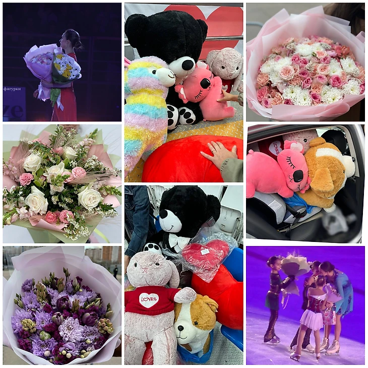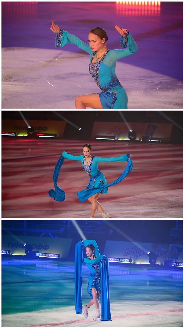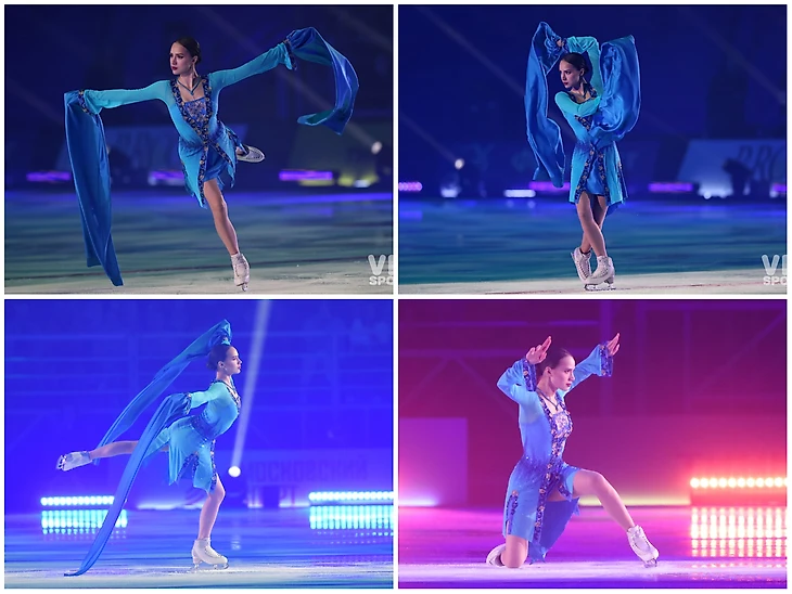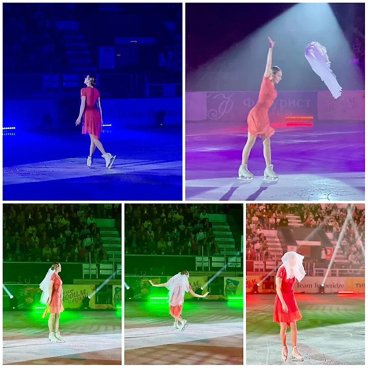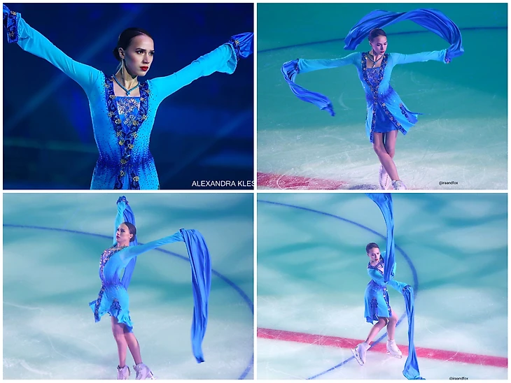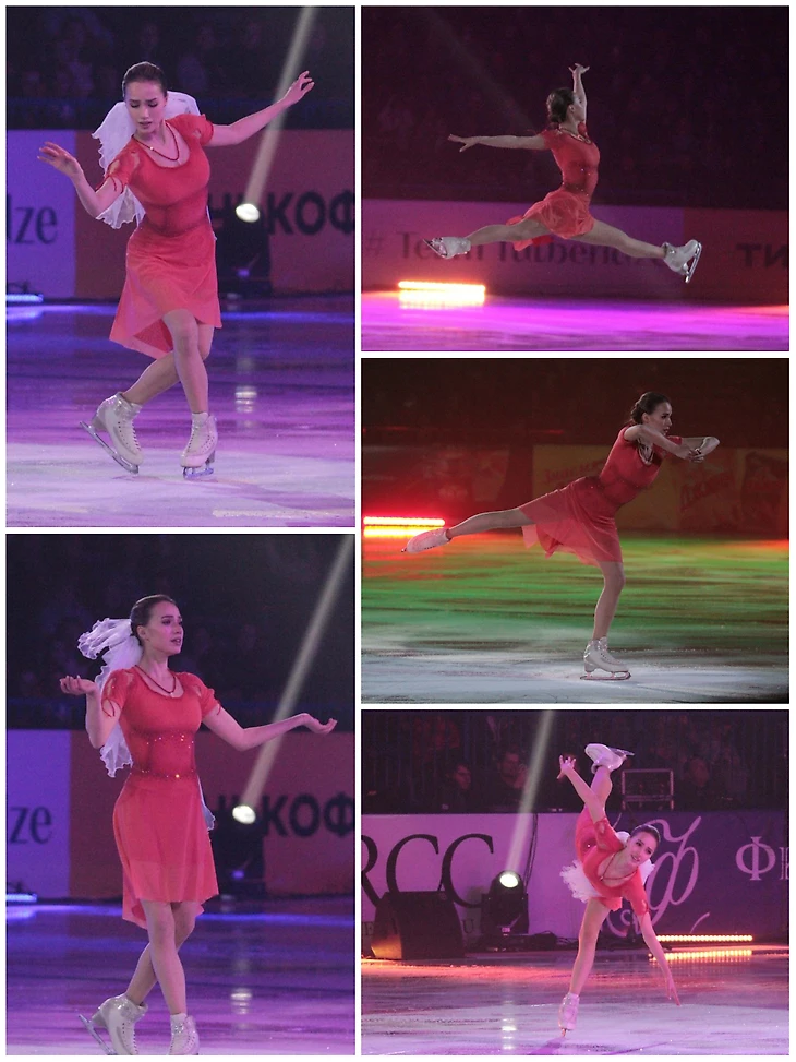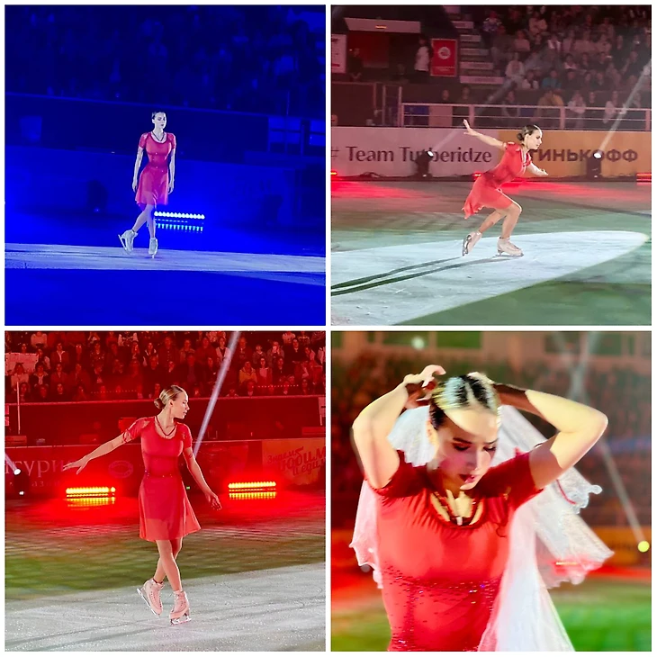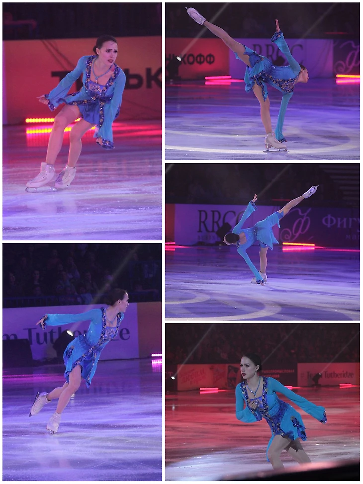 После первого обзора я делала пост о новой программе Алины Загитовой - восхитительный вальс на музыку к к/ф «Мой ласковый и нежный зверь», показанный на шоу «Чемпионы на льду» в следующем, по расписанию тура, городе - в Москве. Он был полностью посвящён этой программе, однако, справедливости ради, нужно отметить, что и второй номер Алины под музыку к к/ф «Дом летающих кинжалов» был встречен публикой на «ура»! Вообще, в Москве Алина была особенно прекрасна: сосредоточена на каждом движении (чувствуя, как-бы, некую ответственность), но в то же время и достаточно расслаблена, показывая мастерство своего танца, в результате чего оба номера смотрелись легко и непринуждённо. Порадовали и болельщики Алины, которые задарили её цветами и подарками, а на трибунах окружили своей любовью, оказав достойный приём нескончаемыми овациями.