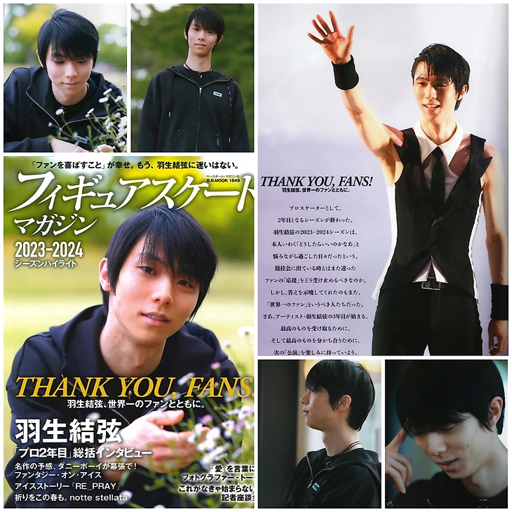 В журнале эксклюзивное интервью с Юдзуру, в котором он подводит итоги своего второго года в качестве профессионала, о том он чувствовал, что может положиться на своих фанатов. Здесь есть статьи о его сольном туре «RE_PRAY», ледовых шоу «notte stellata» и «Fantasy on Ice 2024», а также статья фотографа Тору Ягучи-сана и многое другое.