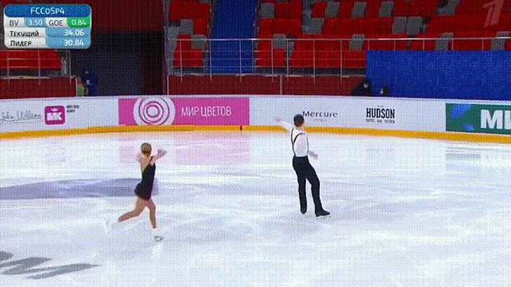Если между комбинациями Фурнье-Бодри и Соренсена разница в один поворот, то Усова / Антонов исполнили разные дорожки по ноге и ребру. Усова выполняет вполне стандартный набор, Антонов — на левой ноге, а танцоры её не любят, + редкие повороты: