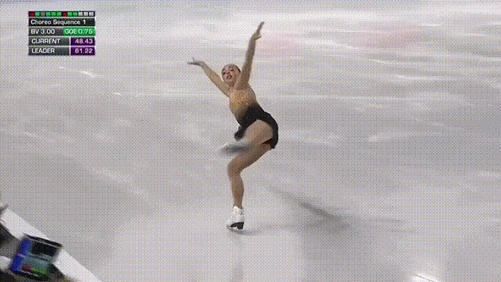 А ведь в короткой программе вторым блоком стоит «скобка-выкрюк-крюк», одно из сочетаний, которое позволяет получить 4 уровень, и Жозефин его получала, а в произвольной всегда третий. 2 редких блока, а зачем?