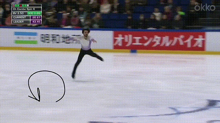 Допускаю погрешность. Во-первых, какой-нибудь поворот мог просто затеряться в записях. Во-вторых, в зачет не вошли совершенно неопознаваемые повороты, их немного. Но вообще возникла ситуация: у одного фигуриста 18 чётких поворотов, не вызывающих сомнений, а у другого — 19, часть из них на грани. Поэтому не стоит воспринимать итоговый результат, как нечто непоколебимое — зависит от того, кто и как считает. В следующий отдельно отметила бы все микрокрюки, совсем кривые чоктау-моухоки и повороты без выезда. Без выезда примерно так: