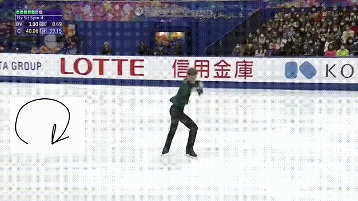 Есть ещё один параметр сложности. Помните гиф с Губановой на Олимпиаде? На нём и разберём. Чтобы не путаться: сложные повороты так и называю поворотами а направление поворота по или против часовой— вращением или оборотом. Удобнее сделать все 3 поворота в одном направлении — по часовой (Ч) или против (П), то есть ППП или ЧЧЧ. Текущее положение по блокам сезона: ППП — 344 раза, ЧЧЧ — 204, другие — 18. Ощутимая разница, так выглядит одно направление: