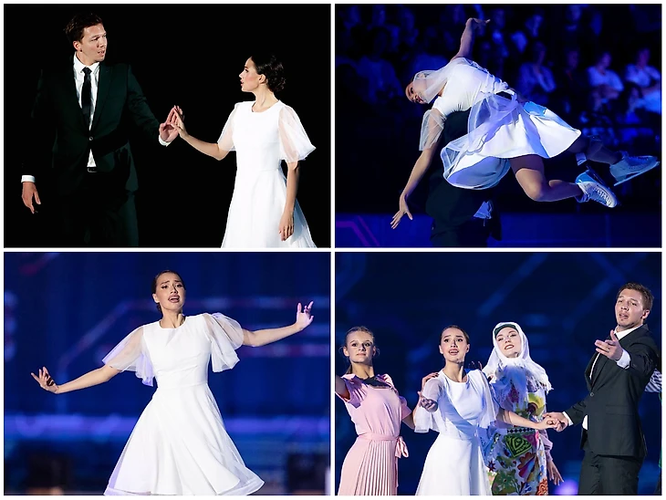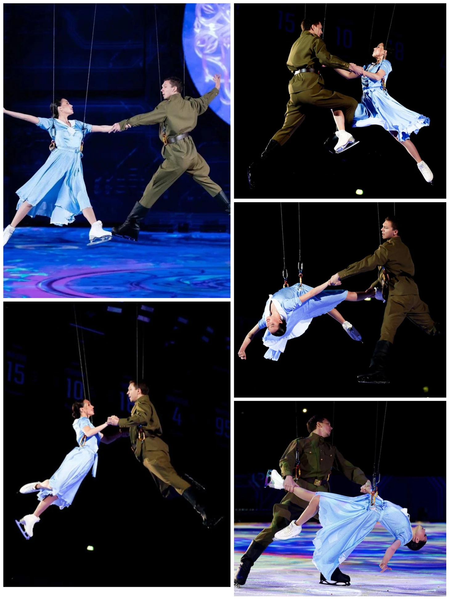 А следом за ним – сильнейший номер «Письмо с фронта», в котором Алина Загитова и Дмитрий Соловьев в прямом смысле поднялись в небо под купол Татнефть-арены…