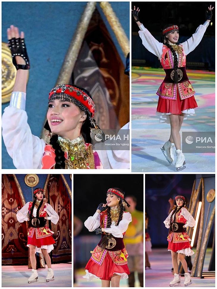 В первом отделении шоу мы увидели красочные сцены с участием некоторых представителей татарского фольклора в исполнении наших известных фигуристов, которые потрясающе раскрылись для многих из нас с совершенно другой стороны!
