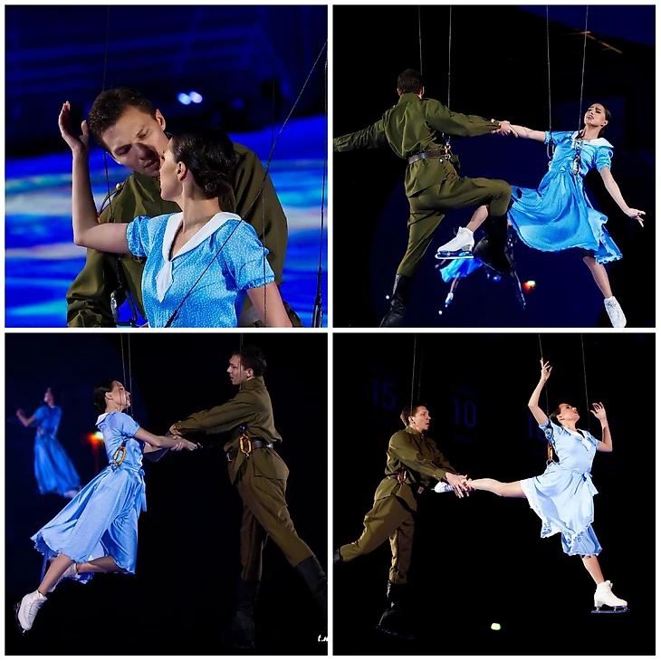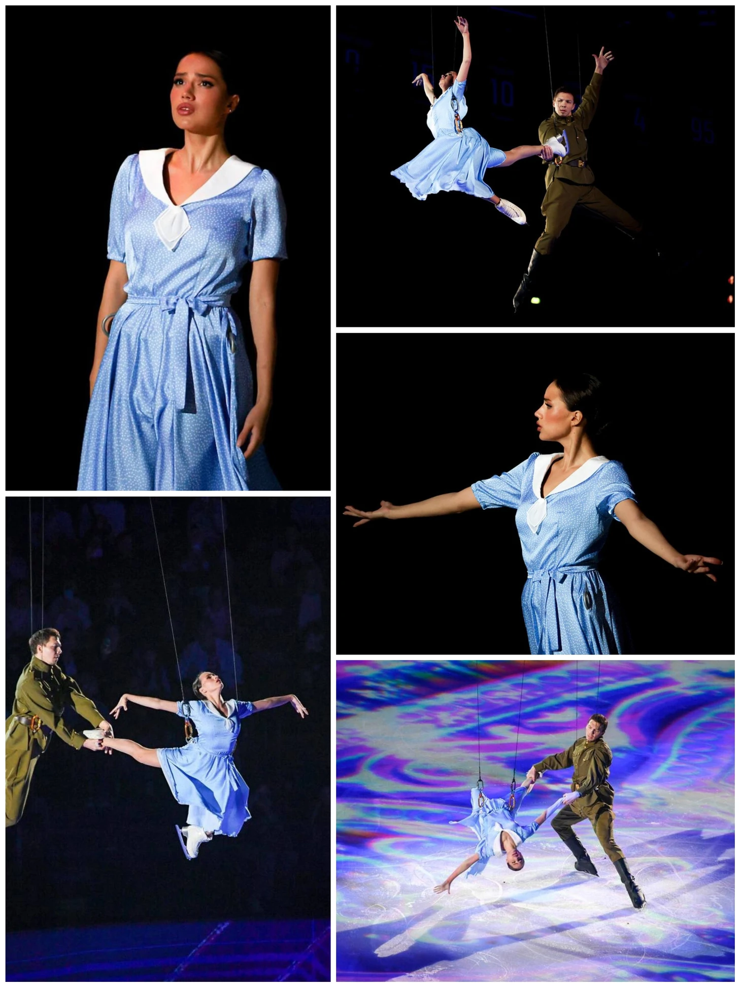 Хочется отдельно поблагодарить Алину и постановщиков шоу за то, что сделали это, на мой взгляд, правильно, так, как это мало кто делает сейчас. Артисты полностью понимали, что они исполняют, выглядев при этом так, как-будто только сошли с плакатов советского времени того периода. Сцены Великой Отечественной Войны показаны очень деликатно, не перегружены трагизмом, несмотря на всю трагичность событий и на то, что в них была показана вся грусть и боль нашего народа. Но одновременно в этих сценах прослеживалась и светлая надежа на то, что все будет хорошо, так сильна была вера в людей, в правду, в победу, которую артисты изобразили на льду. Невозможно было сдержать слез, глядя на эти сцены.