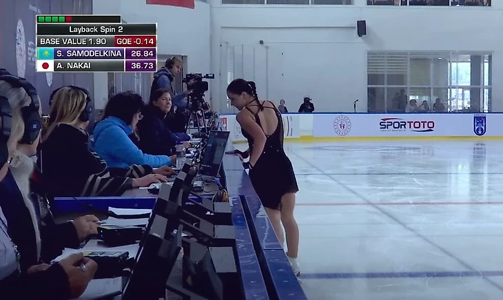 На летнем чемпионате Казахстана у Самоделкиной мало что получилось – упала с тройного лутца и осталась без каскада, да и в целом выглядела тяжеловато.