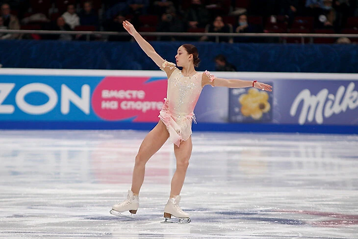 5. За прокат Самоделкина получила 117,44 балла. На космические 24,19 балла меньше, чем три года назад на дебютном Гран-при. Сумма тоже скромная – 174,58 против 202,39 в 2021-м.