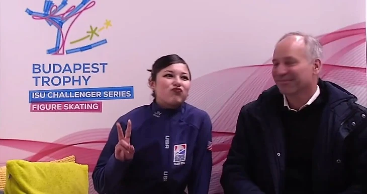 Алиса не скрывала радость от золота на Budapest Trophy: строила счастливые гримасы и обнималась с тренером.