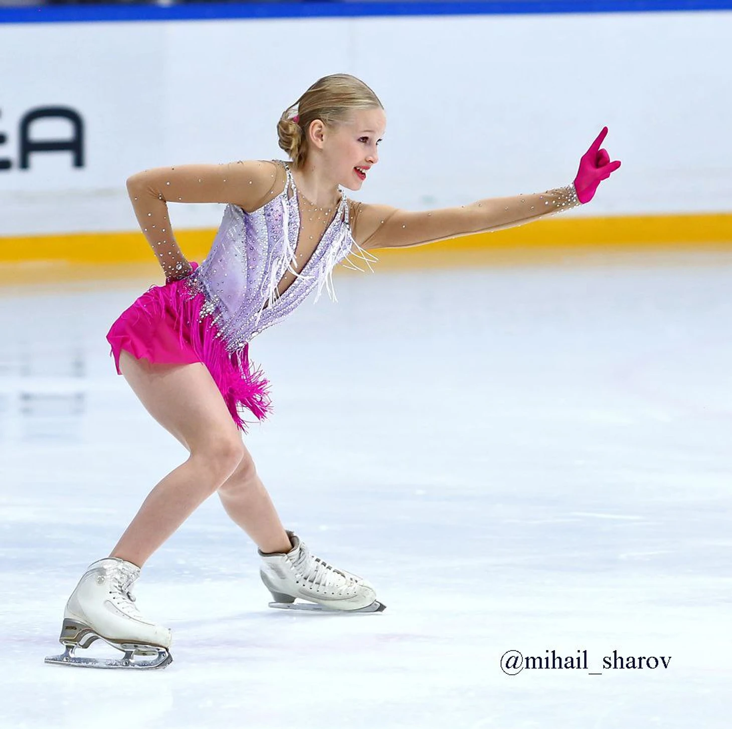Поддержала «тенденцию» хороших прокатов с тройными (единственной зацепкой можно назвать отмеченное в протоколах неясное ребро) ещё одна классная петербурженка Варвара Лисс — самая юная участница турнира. В Варе мне особенно пригляделась прекрасная растяжка во вращениях, а также два очень ярких и качественных, на мой взгляд, костюма. Образ с ярко-малиновой юбкой и такими же перчатками в короткой, поставленной на композицию «Cinema Italiano» из мюзикла «Девять» в исполнении Кейт Хадсон, напоминает даже образ какой-то феи из вселенной «Винкс», а небесно-васильковый комбинезон из прошлогодней произвольной под музыку Баха — просто услада для глаз.