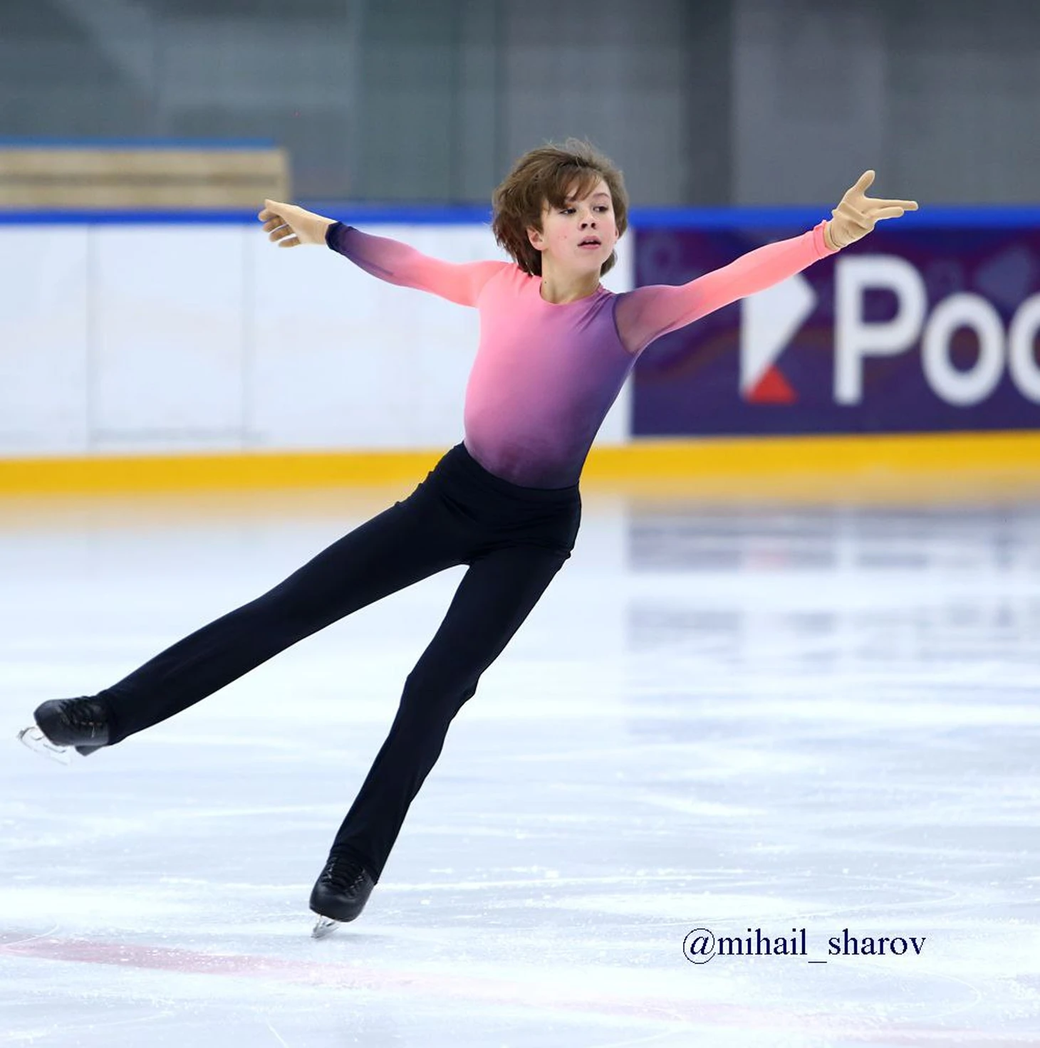 Магнитогорский этап стал для Николая Колесникова вторым подряд, и здесь он практически повторил расклад своего выступления в Москве, когда фигурист, оказавшись по результатам первого соревновательного дня вообще за пределами пьедестала, был вынужден «догонять» тех, кто выше. И у него снова это успешно получилось — с тремя квадами, пусть и не идеально чистыми. Кстати, из всей заключительной разминки именно произвольная Коли мне нравится больше всего — скрипка «Аранхуэзского концерта» сама по себе вызывает какие-то трогательные эмоции. Но костюм, на мой взгляд, сюда бы подошёл построже и потемнее: идеальный пример — практически однотонный чёрный комбинезон у Петра Гуменника под ту же музыку.