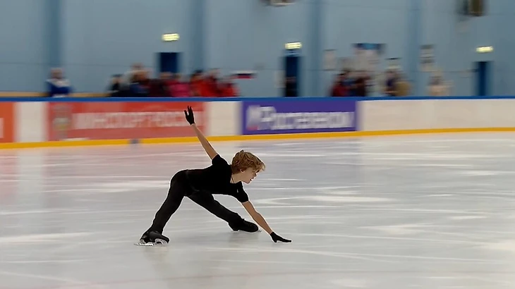 Один из лидеров юниорского катания Арсений Федотов делает в произвольной идентичный элемент.