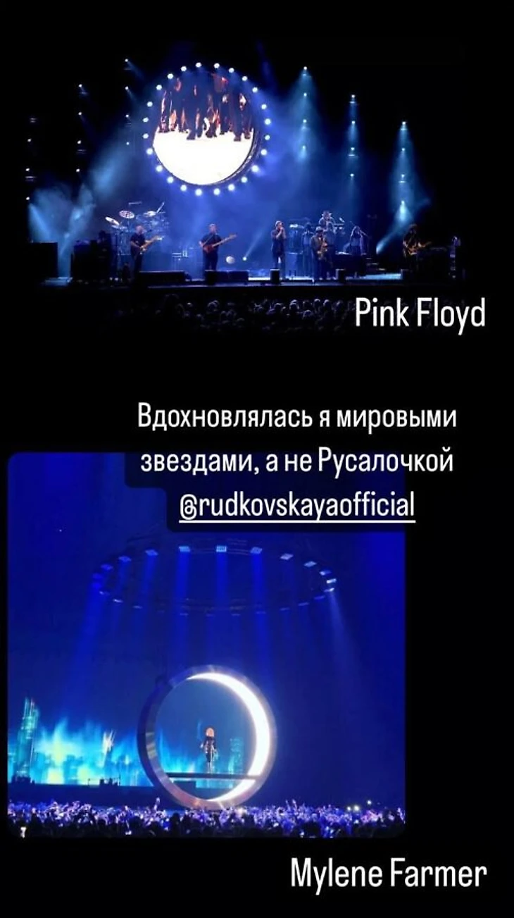А потом добавила: «Вдохновлялась я мировыми звездами, а не «Русалочкой». В качестве иллюстрации – кадры из шоу Pink Floyd и Милен Фармер.